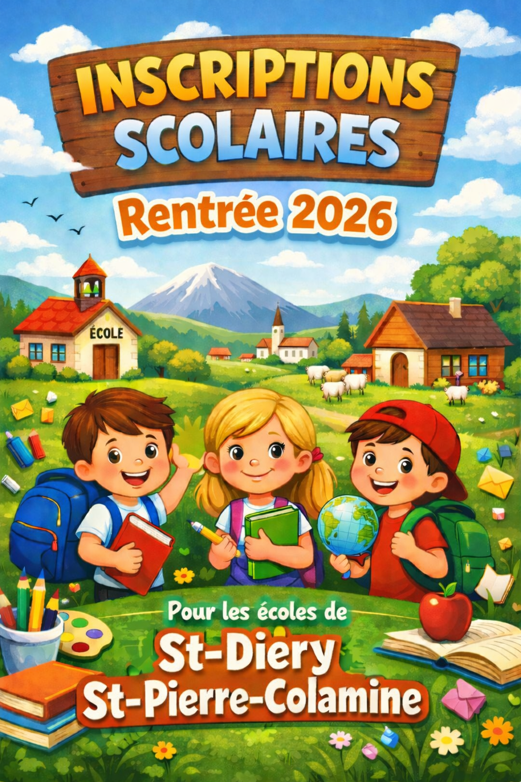 Les inscriptions scolaires (école de Cotteuges et Lomprat) pour la rentrée 2026/2027 sont ouvertes. La date limite de retour des dossiers auprès du secrétariat du SIVU ST-DIERY/ST-PIERRE est fixée au mardi 17 février 2026. La démarche concerne uniquement les nouveaux élèves (petite section et nouveaux arrivés en cours de scolarité)